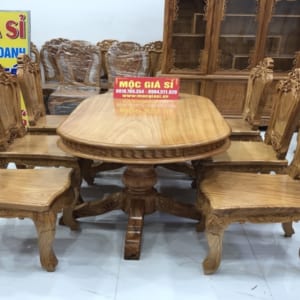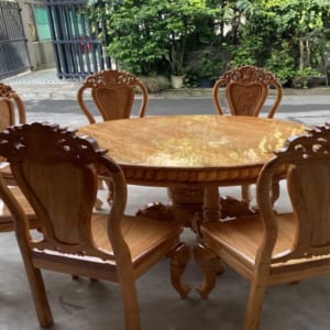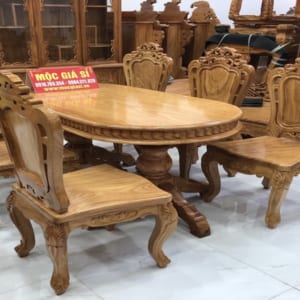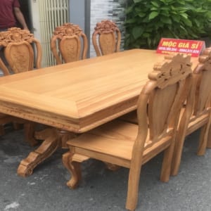Bộ Bàn ăn ghế ăn 6 ghế louis lưng tựa to. Măt ghế dày 4 cm