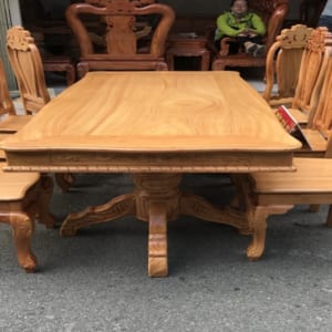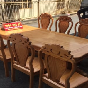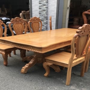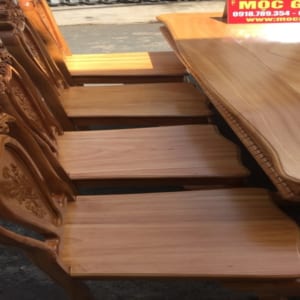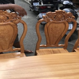 Bộ Bàn ăn ghế ăn 8 ghế lưng chạm tựa hoa, tó trên chạm bông hồng. Măt ghế dày 1cm8