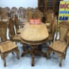 Bộ Bàn ăn ghế ăn 8 ghế lưng chạm tựa hoa, tó trên chạm bông hồng. Măt ghế dày 1cm8