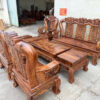 BỘ BÀN GHẾ HOA LÁ TÂY GỖ GÕ ĐỎ 10 MÓN