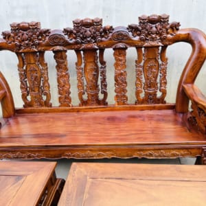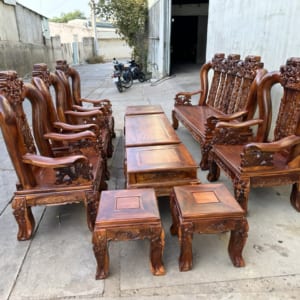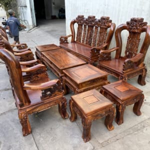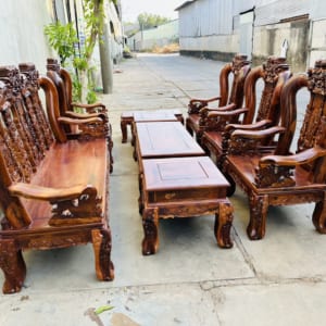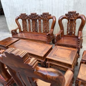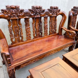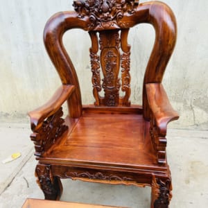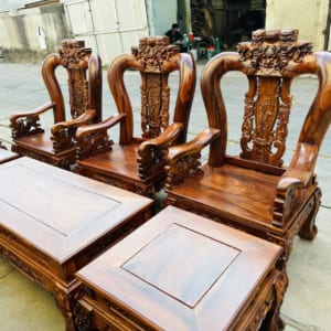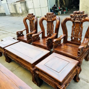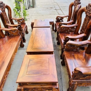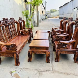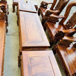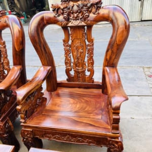 -Bộ bàn ghế nghê dỉnh tay 14 gỗ muồng. Mẫu nghê đỉnh này được đục tay Rồng tạo thêm sự mạnh mẽ cho ghế.