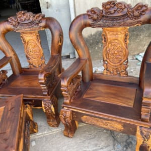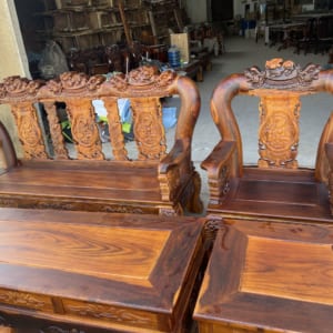 -Bộ bàn ghế nghê dỉnh tay 16 cẩm đen (cẩm lai nam phi, lim xet, lim đen… ). Mẫu nghê đỉnh này được đục tay Rồng tạo thêm sự mạnh mẽ cho ghế.