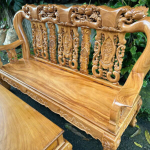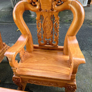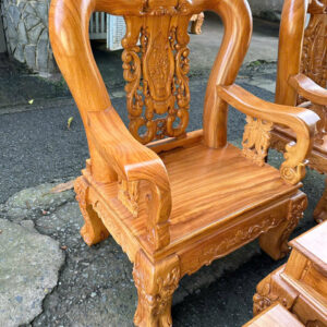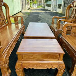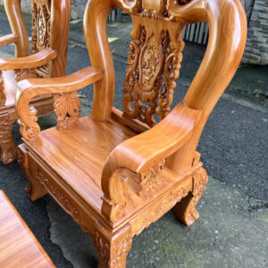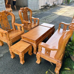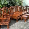 Bộ được làm từ gỗ gõ đỏ (cate) tay 12-6 món, mặt bàn và ghế dày 2cm5 cưa đi