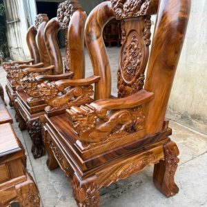 BỘ BÀN GHẾ TAY 10 MẪU RỒNG LONG VƯƠNG TRÀM BÔNG VÀNG